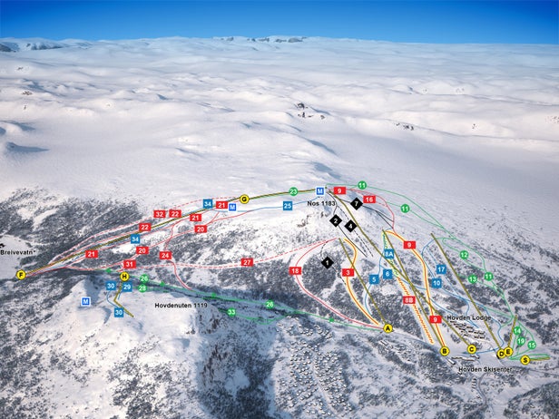 Hovden | Szczegółowy profil ośrodka narciarskiego ze wszystkimi najważniejszymi informacjami na temat wyciągów, tras, karnetów, kamerek, pogody, terminów otwarcia sezonu i grubości pokrywy śniegu