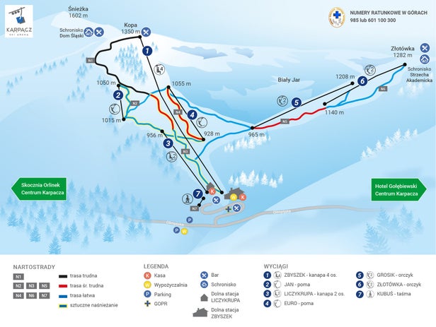 Karpacz Ski Arena | Szczegółowy profil ośrodka narciarskiego ze wszystkimi najważniejszymi informacjami na temat wyciągów, tras, karnetów, kamerek, pogody, terminów otwarcia sezonu i grubości pokrywy śniegu
